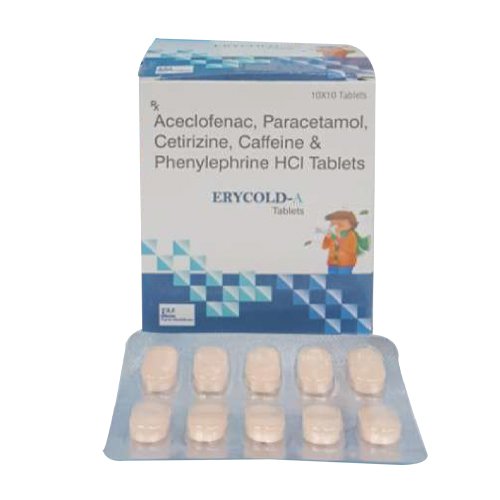 Acelofenac Ip 100mg+paracetamol Ip 325mg+cetrizine Dihydrochloride Ip 10mg+caffeine Ip 25mg+phenylphirine Hcl Ip 5mg Tablets | 20X10 | Blister | 1380 | View Details |