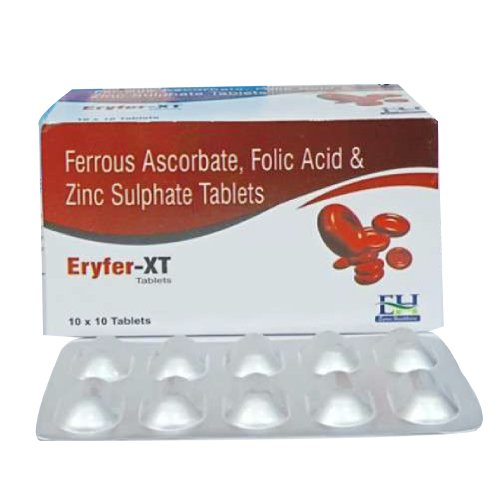 Ferrous Ascorbate 100mg+folic Acid 1.5mg Zinc Sulphate Monohydate 61.8mg+ Elemental Zinc 22.5mg | 10X10 | Alu-Alu | 1800 | View Details |