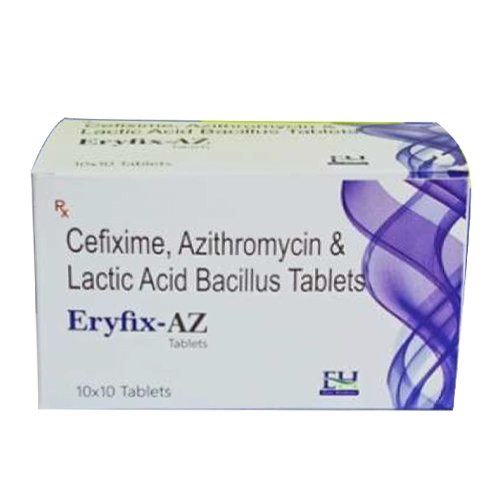 Cefixime 200 Mg+azithromycin 250mg Lactic Acid Bacilus Tablts | 10X10 | Alu-Alu | 3600 | View Details |